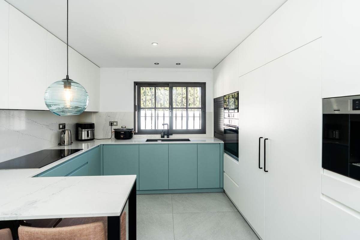 The villa enjoys a superb location in El Pilar, one of the most convenient residential areas of El Paraíso. A wide selection of restaurants, cafés, supermarkets, a pharmacy, butchers and beauty salons can all be reached within a few minutes’ walk, while the beach is approximately 15 to 20 minutes away on foot via the well-known blue bridge. The surrounding area also offers a fantastic choice of golf courses, international schools and leisure facilities.