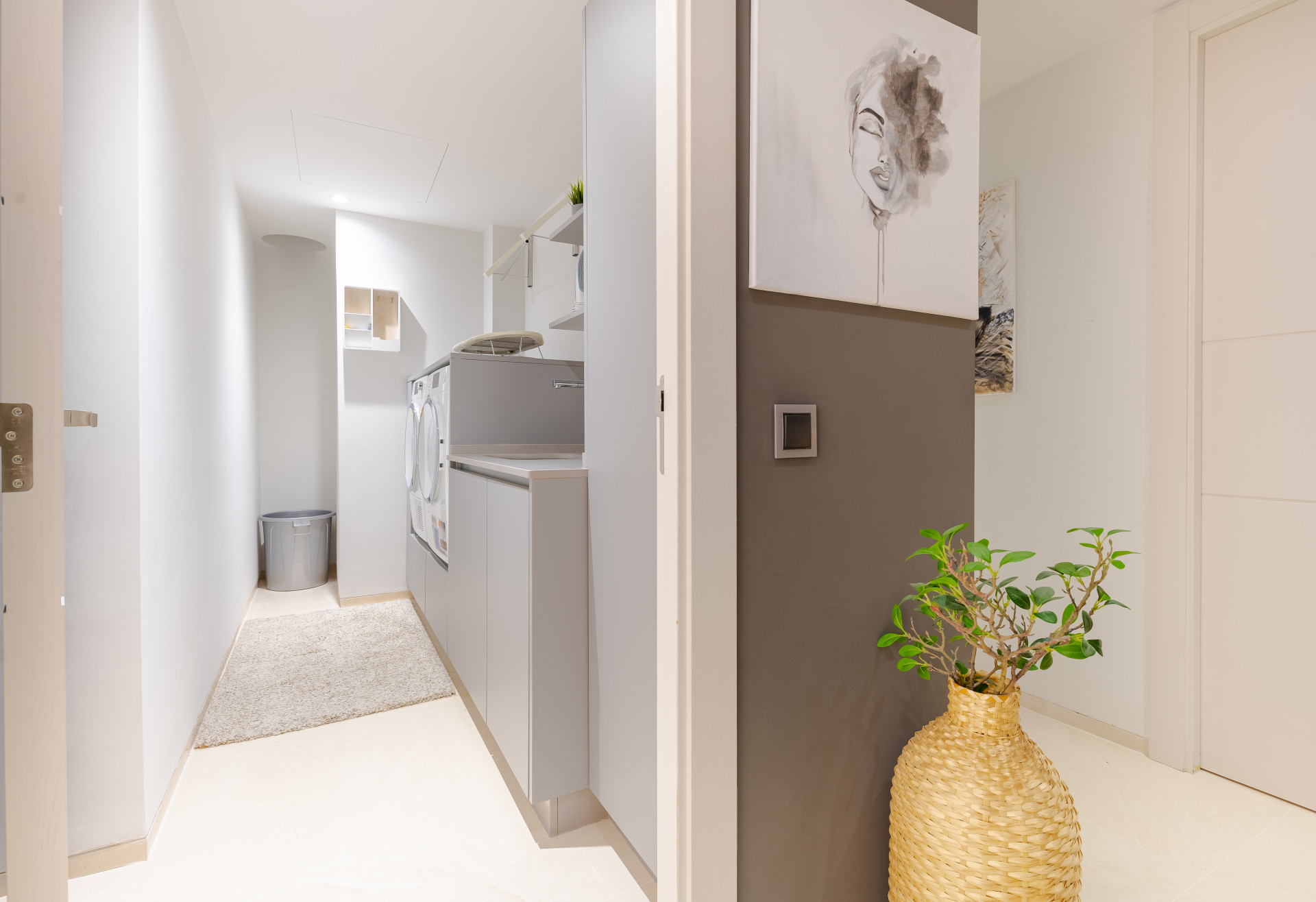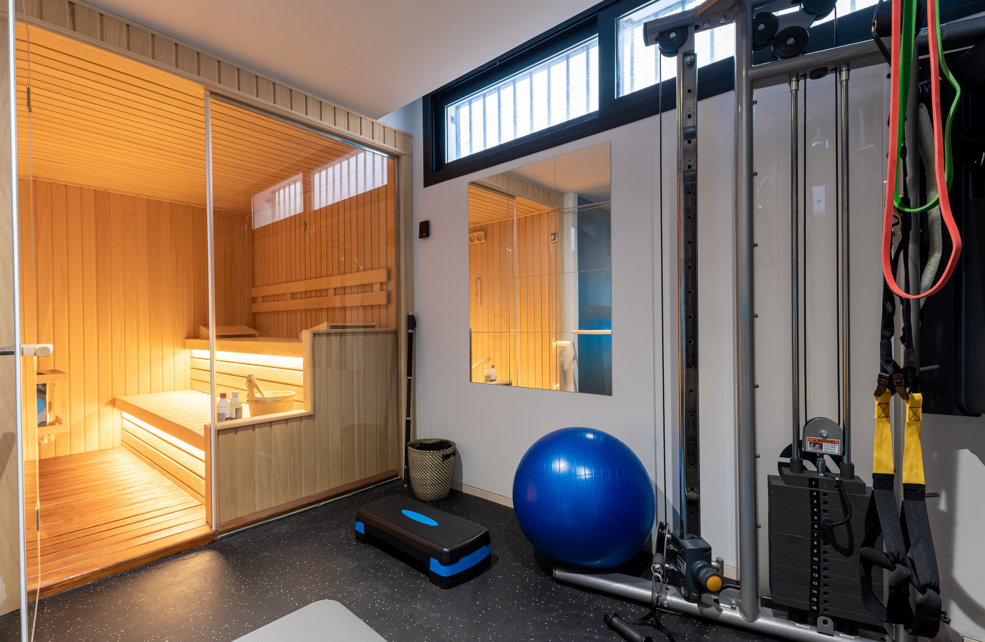 The lower level is dedicated to leisure and functionality, featuring a private cinema room, a fully equipped gym, and a practical laundry area, perfectly balancing comfort with everyday living.