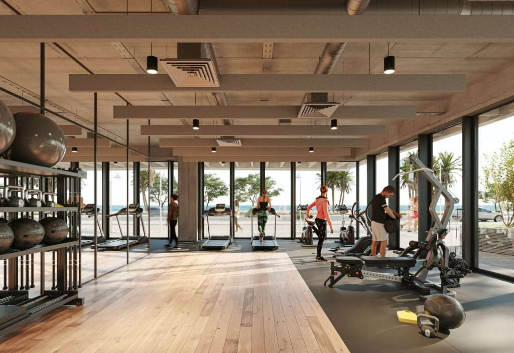 At the top of the building, the rooftop becomes a central meeting point for residents, featuring a swimming pool and solarium designed for relaxation while enjoying panoramic sea views.