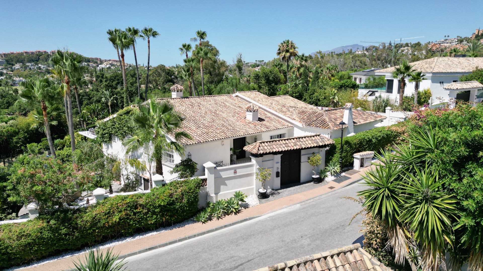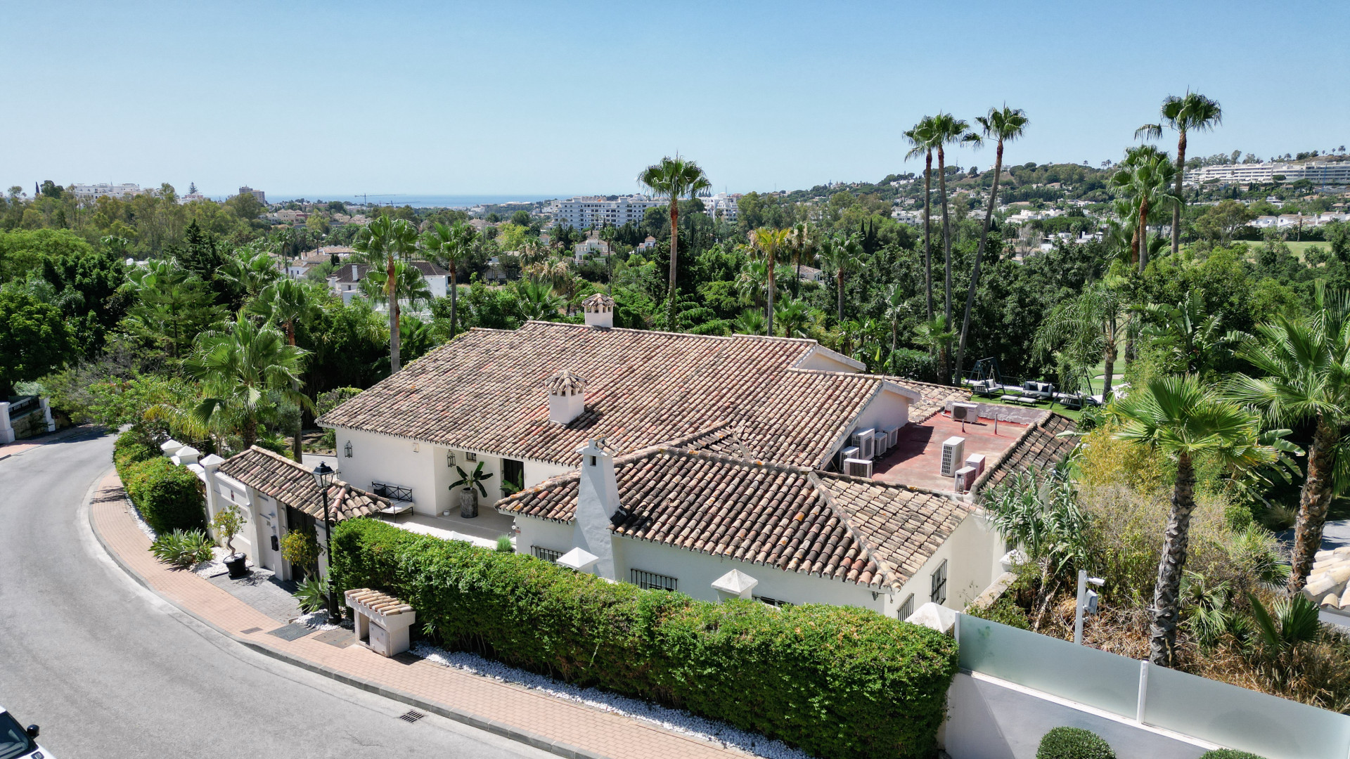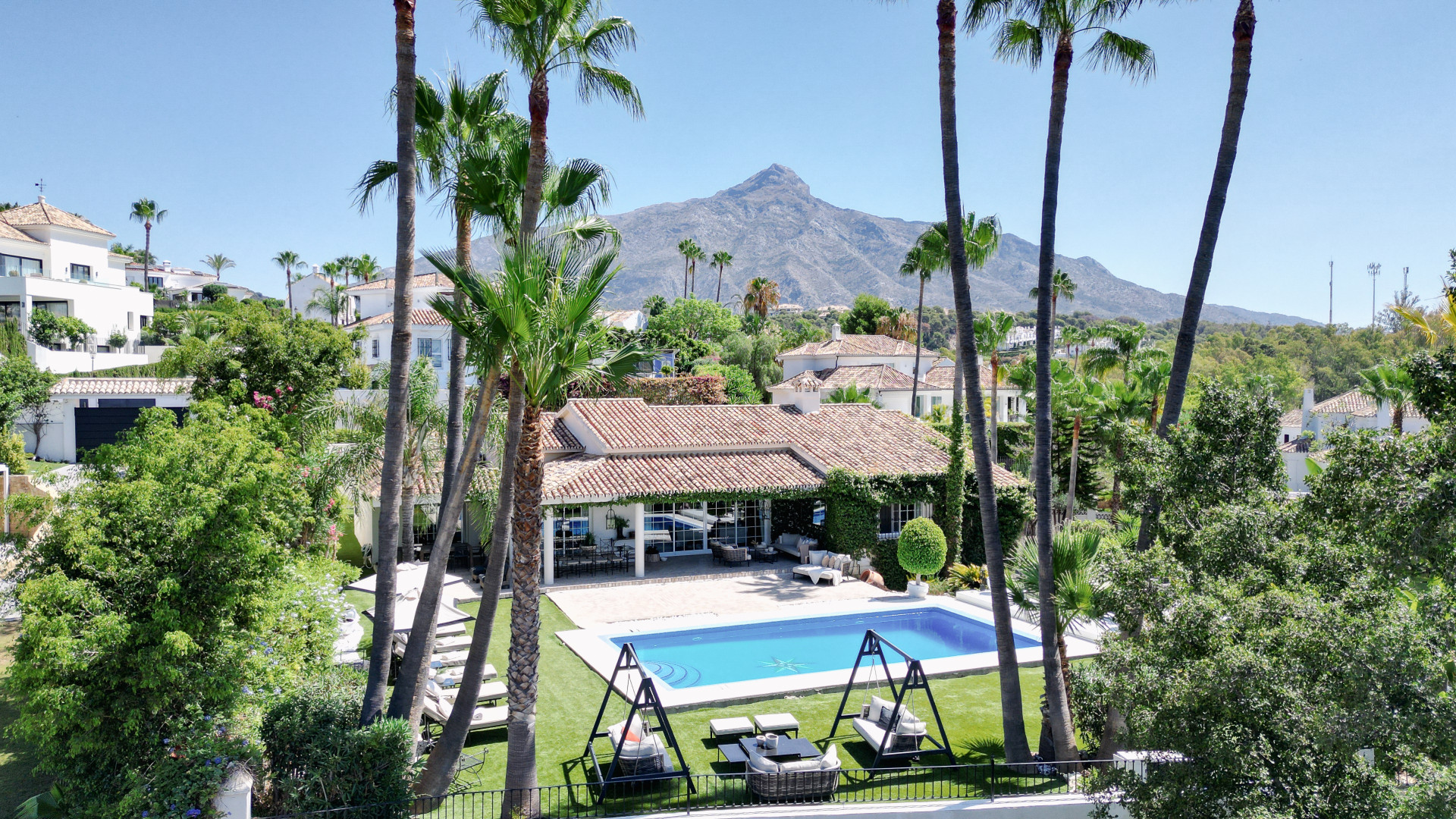 Located in Las Brisas, Nueva Andalucía, one of Marbella’s most desirable residential areas, the villa sits just minutes from renowned golf courses including Las Brisas Golf, Aloha Golf, and Los Naranjos Golf. The vibrant marina of Puerto Banús, with its luxury boutiques, fine dining, and golden beaches, is only a short drive away.